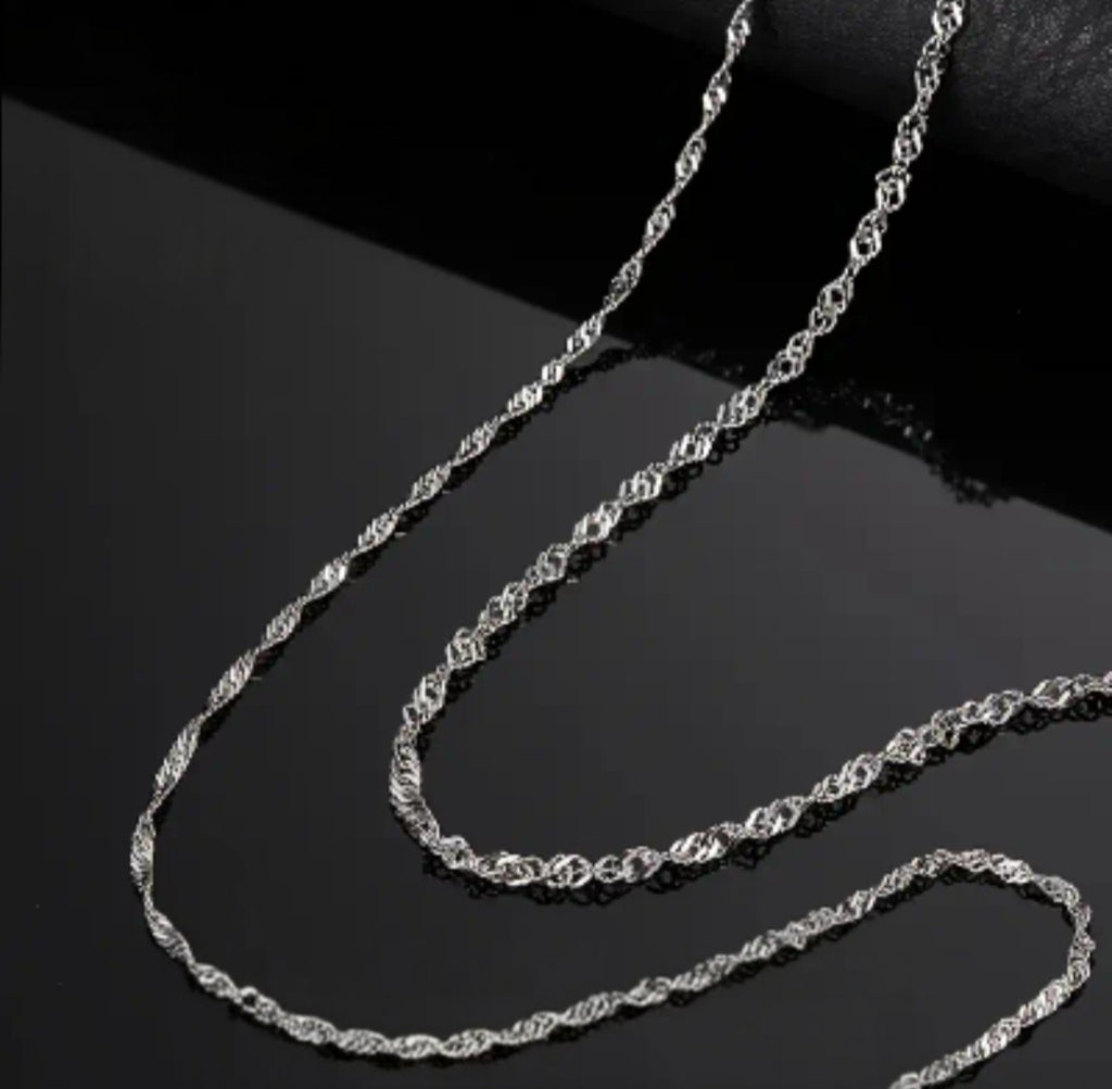 Crafted from premium 925 sterling silver, the Sterling Silvery Water Wave Chain spans 60cm, offering a sophisticated expression of fluid design. Its intricate wave pattern mirrors the natural elegance of flowing water, adding a distinctive texture and refined shimmer to any ensemble. The chain’s exceptional craftsmanship ensures durability and long-lasting shine, making it suitable for daily wear or special occasions. A versatile accessory, it pairs effortlessly with both casual and formal attire, elevating your collection with understated luxury and expert design detail.
