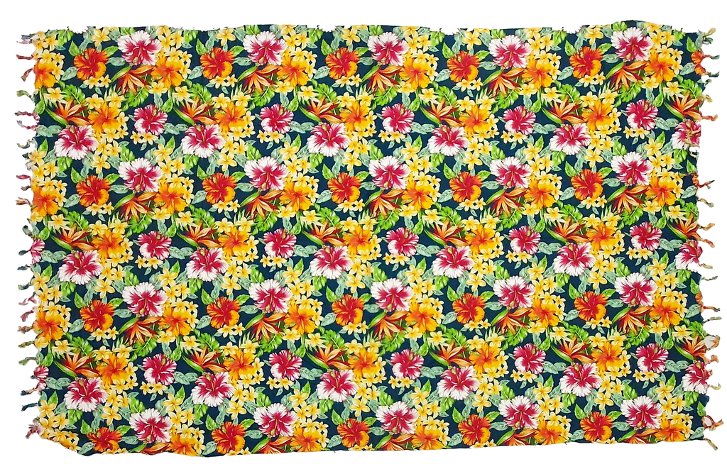 Turquoise Hibiscus Sarong with Frills