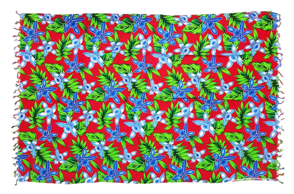 This Dark Red with blue flowers Sarong with Frills offers a refreshing look for the beach. Crafted from soft rayon material, it measures 1.8m x 1.1m and provides a comfortable fit that can be easily worn as a wrap With its stylish frills, you can be sure of a fashionable feel
