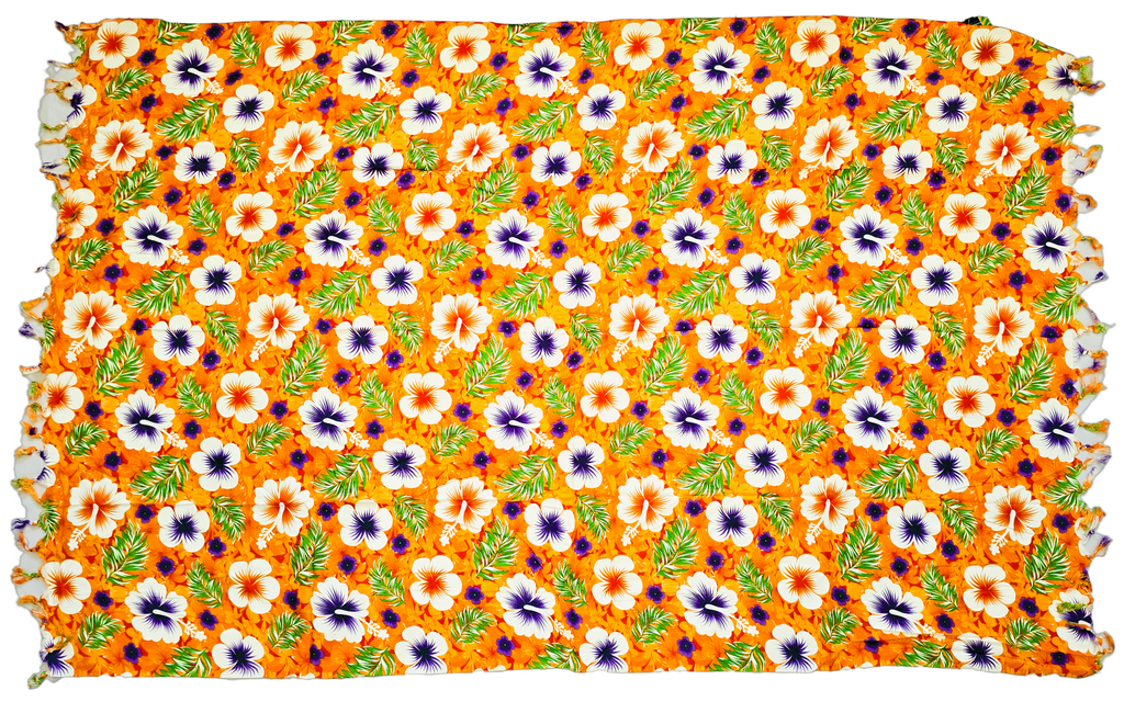 The Orange Hibiscus Sarong with Frills measures 2 Yards (1.8m x 1.1m), making it a perfect choice for beach or wrap-around wear. It is crafted from soft rayon material for a comfortable fit.